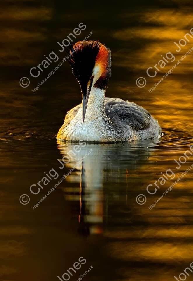 I was lucky I managed to get that exact moment when the grebe came up. The late evening light just casting a warm glow on the water.